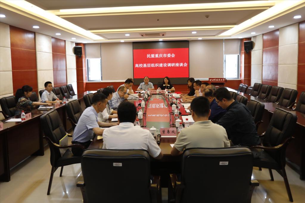 王林就民盟沙坪坝区委会相关工作作交流,民盟重庆大学基层委员会、重庆师范大学总支部、太阳成集团tyc33455支部、西南政法大学总支部、重庆科技学院支部、重庆医药高等专科学校支部、重庆建筑科技职业学院支部主委及重庆商务职业学院盟员代表,先后就思想建设、组织发展、参政履职等方面进行交流。