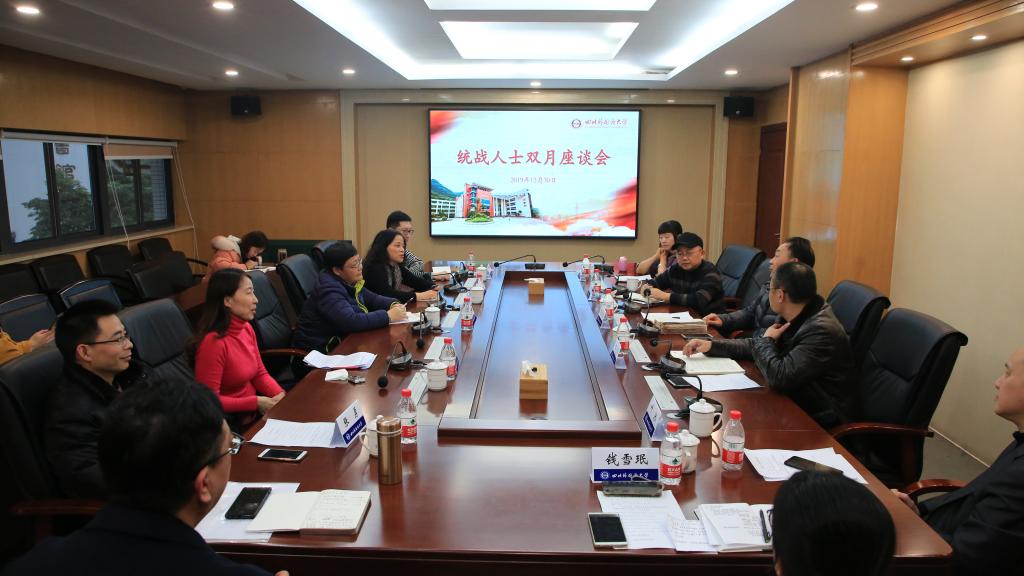 12月30日,学校召开统战人士双月座谈会,学习贯彻党的十九届四中全会精神,围绕学校制度建设建言献策。纪委书记苟欣文,党委统战部常务副部长崔光军、副部长官晴华,各民主党派、知联会代表参加座谈会。会议由崔光军主持。